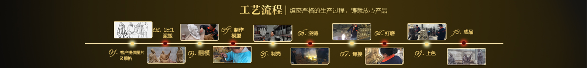 制作一件完美的鑄銅雕塑,最重要的步驟就是制作泥塑模型,然后再用工業(yè)硅膠拓印、翻模。所以泥塑的姿態(tài)、神情生動與否直接影響最終銅雕塑的品質(zhì)。所以我廠一直對泥塑模型的制作格外重視。我廠以雕塑為本,以藝術(shù)為根,挾中華文化之傳統(tǒng),偕歐陸藝術(shù)之風(fēng)韻,風(fēng)格獨特,盡顯淋漓盡致。我們本著大膽創(chuàng)新、勇于突破的精神,以追求卓越為導(dǎo)向,堅持寧缺勿濫為原則,并可依照您提供的要求,為您量身設(shè)計制作。我廠人才濟(jì)濟(jì),有智慧嚴(yán)謹(jǐn)?shù)墓芾戆嘧樱姸嗄贻p充滿激情、充滿創(chuàng)意的專業(yè)設(shè)計團(tuán)隊、有專業(yè)技術(shù)精湛的雕塑制作人才和專業(yè)的施工隊伍。他們不僅具深厚的文化藝術(shù)底蘊,更汲取當(dāng)代雕塑精華,博采眾家之長,作品既有嚴(yán)肅莊重寫實題材,也有輕松前衛(wèi)的抽象題材,表現(xiàn)手法上浪漫主義中不乏樸實,現(xiàn)實主義中蘊涵著激情,設(shè)計理念貫穿古今、融匯中西,深刻詮釋著藝術(shù)的精髓,把古典主義和后現(xiàn)代主義完美的融合,將雕塑藝術(shù)演繹為力的凝聚、美的體現(xiàn),讓人們感受到的不僅是一種藝術(shù)的浪漫與優(yōu)雅、粗獷與悲壯、更是豐富的優(yōu)秀藝術(shù)寶藏和文化傳統(tǒng),讓您在藝術(shù)與文化中穿流,在時空中飄蕩,使靈魂在藝術(shù)的海洋洗禮。 MORE+